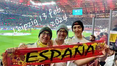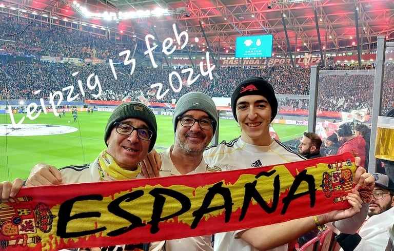 Después de tantos años de viajes, anécdotas y esperas, sabíamos que 2024 podía ser especial. Febrero volvió a ser nuestro mes talismán y nos llevó a Leipzig, con la ayuda de los hermanos Trigueros que nos prestaron sus carnets y los DNI. Viajamos sin entradas seguras, pero con la esperanza de que el destino nos sonriera. Y así fue: conseguimos tres pases, con Adrián ya convertido en parte inseparable de la aventura. El partido terminó 1-1, gol de Brahim, pero lo que realmente nos llevamos fue la ilusión intacta de que esta vez sí podía ser nuestro año.