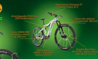 We have e-MTBs with a central motor, minimum autonomy of 80 km. The service includes helmet, gloves if required and basic technical assistance.